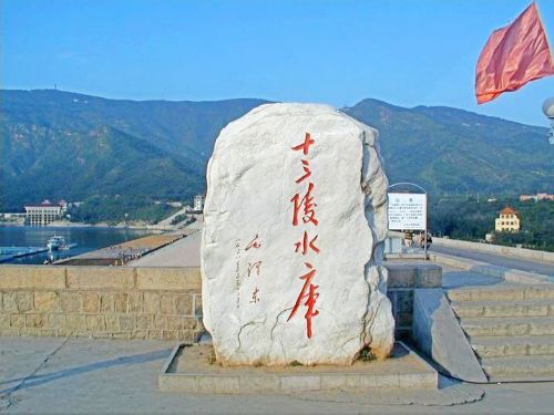 十三陵水库位于北京昌平县境内,在十三陵盆地的东南,距北京城区40公里。十三陵水库是1958年初开始修建的,当年6月30日胜利建成。水库面积是颐和园昆明湖的20倍,总蓄水量为6000多万立方米。水库大坝建在蟒山和汉包山之间,为斜墙式,总长627米,高29米,底宽179米,顶宽7.5米。