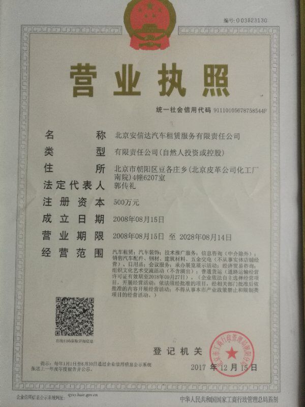 上一条:汽车租赁备案许可证